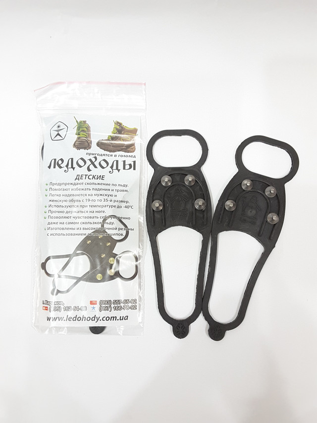 Льодоходи дитячі з чотирма металлическимми шипами захистять від падінь на льоду, міцно тримаються на взуття, легко надіваються, не заважають ходьбі, легкі й компактні. Допомагають уникнути падіння і травм. 0851